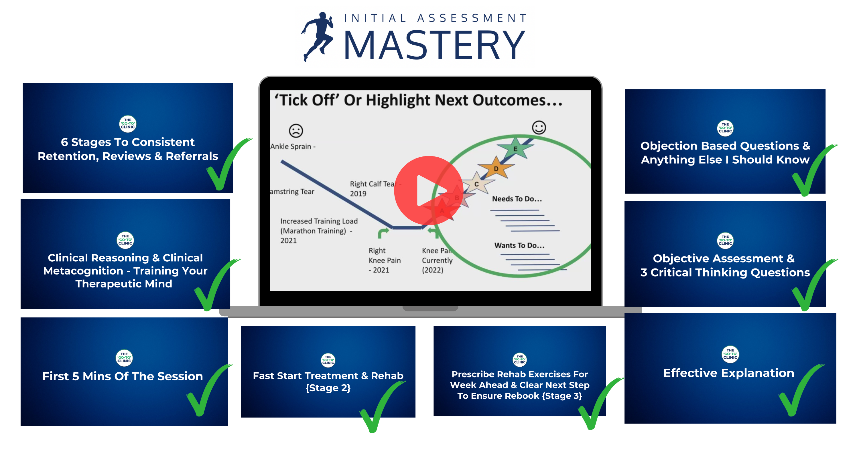 The Initial Assessment Mastery Course is designed to accelerate your implementation timeline from months to just hours by providing visual demonstrations of every framework covered in the book.